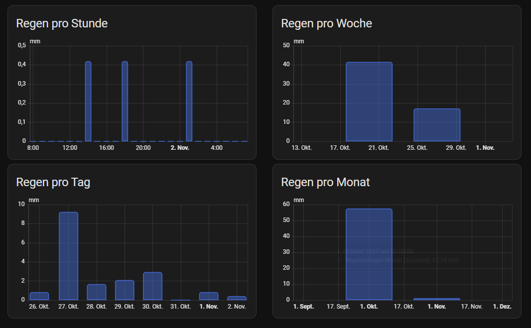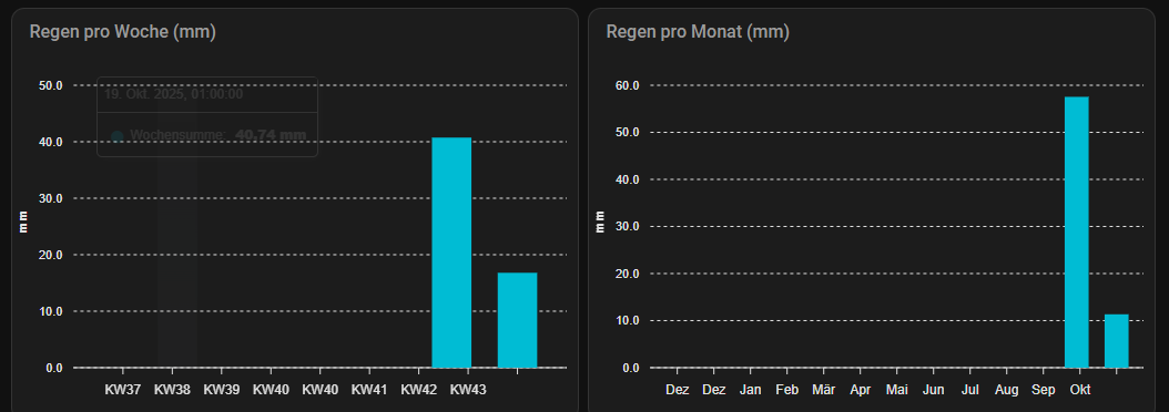 Bei dem wöchentlichen und monatlichen Niederschlag ist die X-Achse nicht gerade sinnvoll und hilfreich. ich habe auch in den Docs keine Möglichkeit gefunden, dass anzupassen.