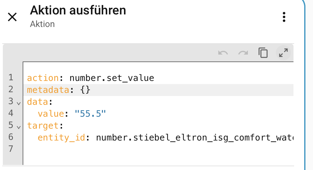 Dann kannst Du als erste Aktion den Input number die aktuelle Temperatur zuweisen. Und im Anschluss die Temperatur auf den Wert des Input number.