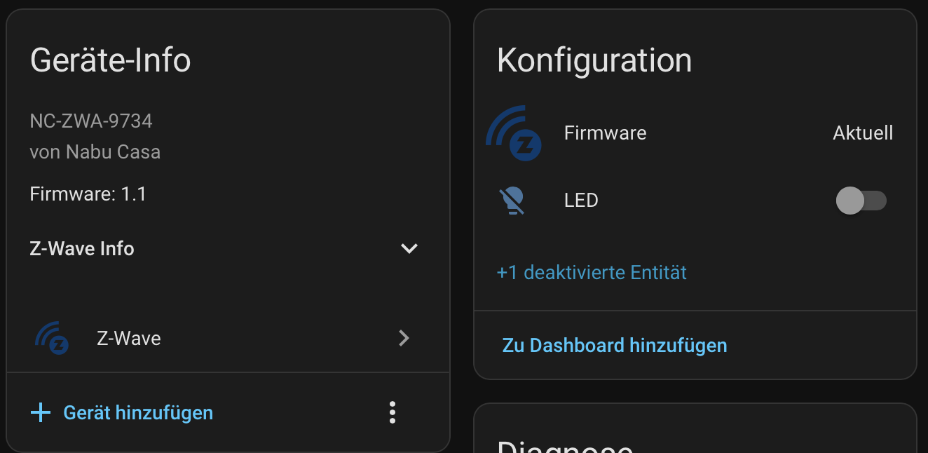 - Der ZWA-2 wurde sofort erkannt. Und auch gleich ein Firmware update v1.1 angeboten. Also zuerst die Firmware aktualisiert.