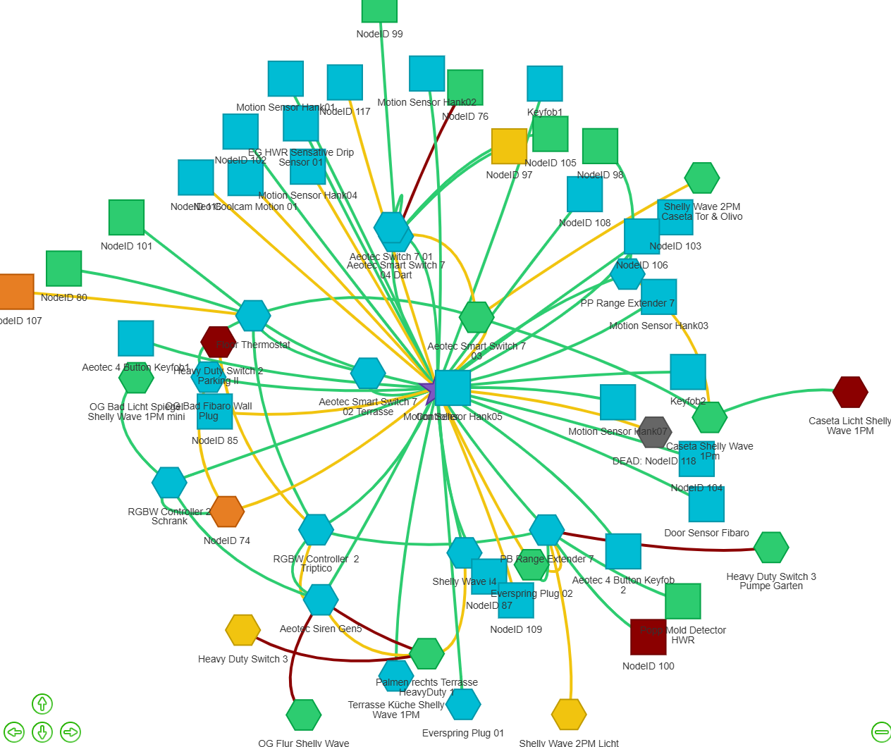 Habe bis jetzt nur für die Strombetrieben Geräte (Repeater) die Routen neu abgefragt. Die meisten Geräte haben einen direkte Verbindung zu Koordinator, was für einen gute Reichweite des Koordinators spricht. Ich würde sagen einen ticken besser als die Z-Station.